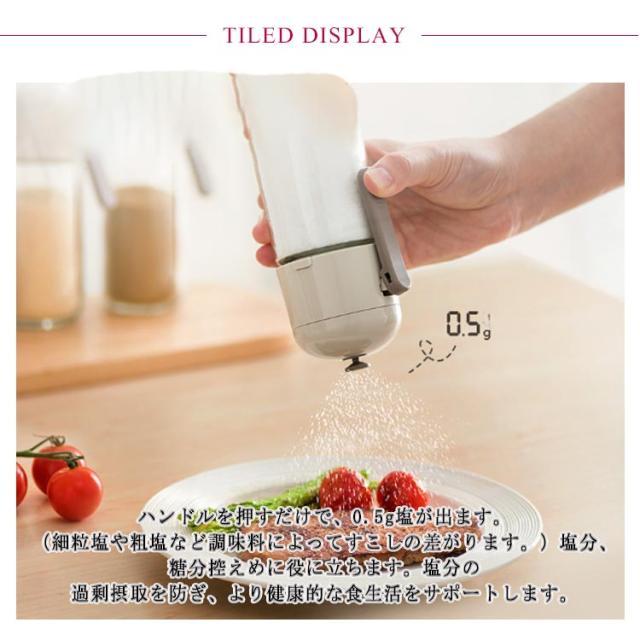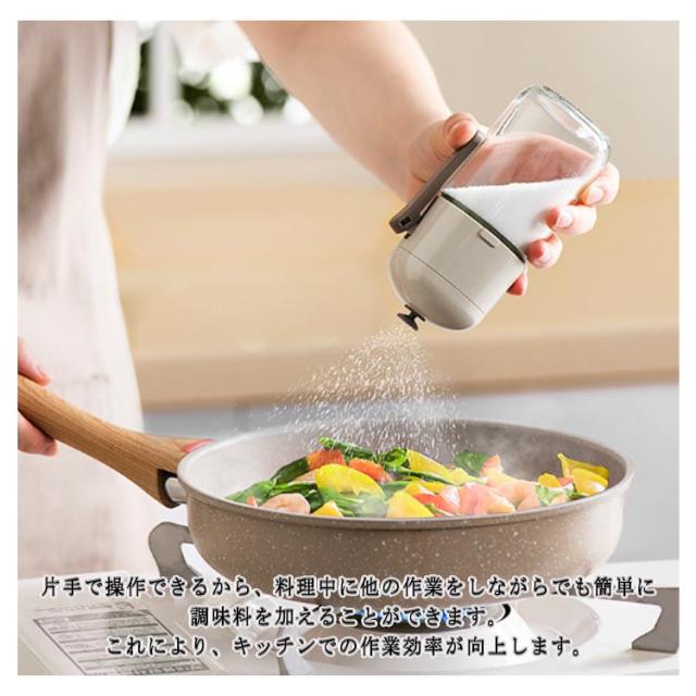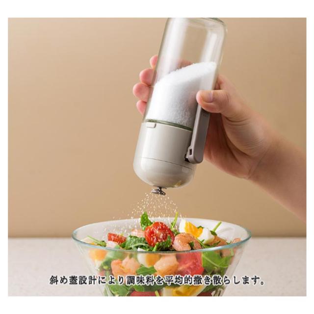 | ワンタッチでパラパラ塩ふるい♪2個セット ハンドルを押すだけで、0.5g塩が出ます。(細粒塩や粗塩など調味料によってすこしの差がります。)塩分、糖分控えめに役に立ちます。塩分の過剰摂取を防ぎ、より健康的な食生活をサポートします。 斜め蓋設計により調味料を平均的撒き散らします。 調味料が外気に触れることなく密閉保存されるため、湿気や他の外部要因から調味料を守り、調味料の塊りを避ける事が可能です。 片手で操作できるから、料理中に他の作業をしながらでも簡単に調味料を加えることができます。これにより、キッチンでの作業効率が向上します。 フレンチトーストに粉砂糖をかけたり、ピザやチキン料理にスパイスをかけたりなど幅広い用途で活躍します。 | |