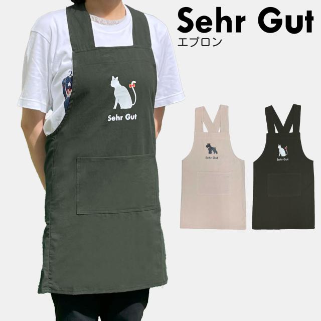 ★ 送料無料 ★ Sehr Gut エプロン シンプル 犬 犬柄 猫 猫柄 帆布 丈夫 かぶるだけ バッククロス ポケット レディース メンズ 男女兼用 フリーサイズ 保育士 介護士 家事 育児 作業用 ワークエプロン ガーデニング ねこ いぬ