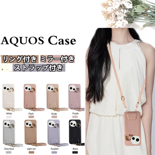 aquos sense9 shg14ケース かわいい 熊 スマホショルダーケース AQUOSセンス9 センス8 sense10 Wish3 Wish4 スマホケース 携帯 ショルダー ミラー付き 鏡 アクオス sense9 SH-53E R8Pro R9Pro sense8 sense7 Plus Sense6S 耐衝撃 背面 カード収納 大人可愛い