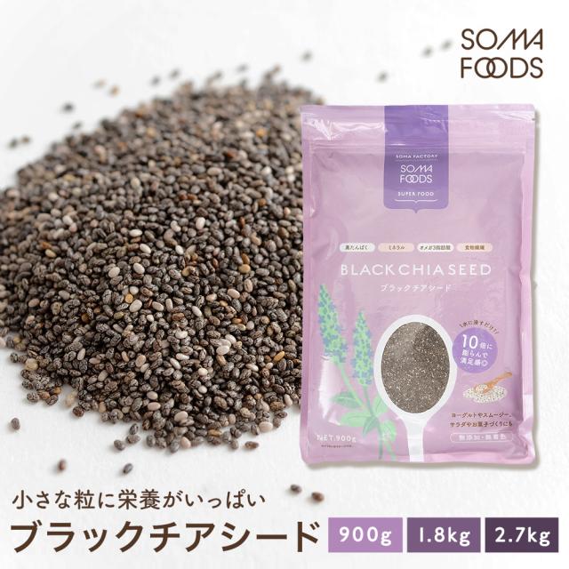 【商品レビューでポイント+5%】 ブラックチアシード 900g チアシード ブラック 無添加 無着色 大容量 スーパーフード 美容 栄養 オメガ3脂肪酸 サプリ 肌荒れ 置き換え 黒 高品質 メール便 送料無料 鉄分 カルシウム マグネシウム 豊富