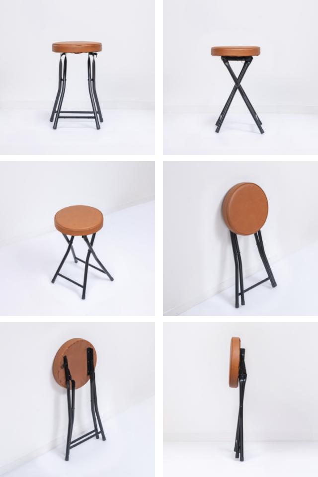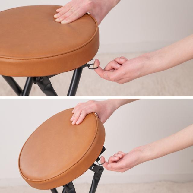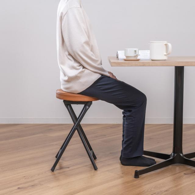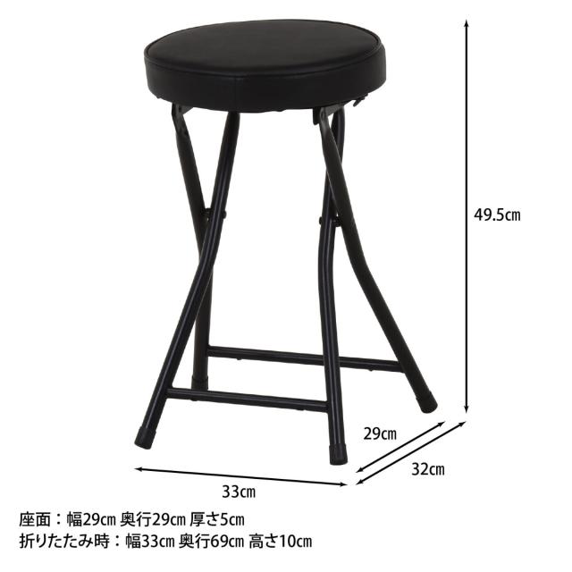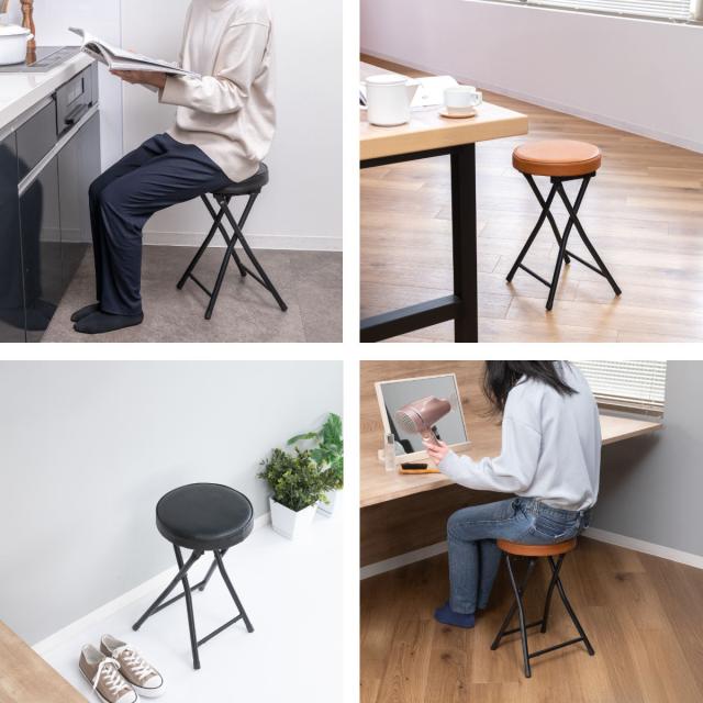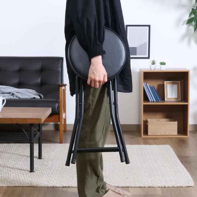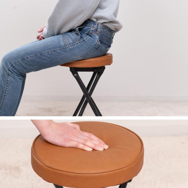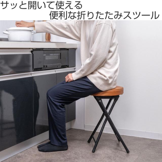 折りたたみ椅子 スツール 座面高49.5cm 合皮クッション座面 ブラックフレーム ( キッチンチェア カウンターチェア 背もたれなし 円形 丸 パイプ椅子 簡易椅子 サブチェア 座面 クッション レザー調 軽い )