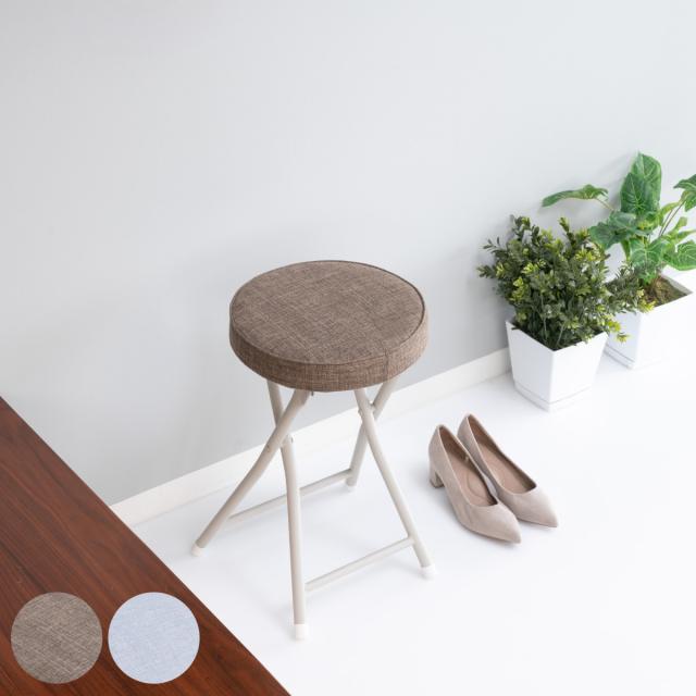 折りたたみ椅子 スツール 座面高49.5cm クッション座面 ( キッチンチェア カウンターチェア 背もたれなし 円形 丸 パイプ椅子 簡易椅子 サブチェア 座面 クッション ファブリック 軽い )