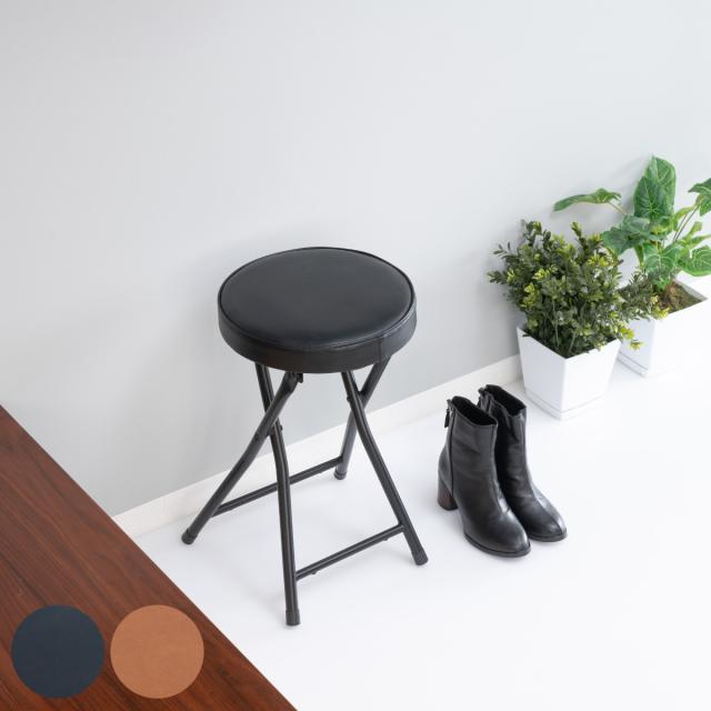 折りたたみ椅子 スツール 座面高49.5cm 合皮クッション座面 ブラックフレーム ( キッチンチェア カウンターチェア 背もたれなし 円形 丸 パイプ椅子 簡易椅子 サブチェア 座面 クッション レザー調 軽い )