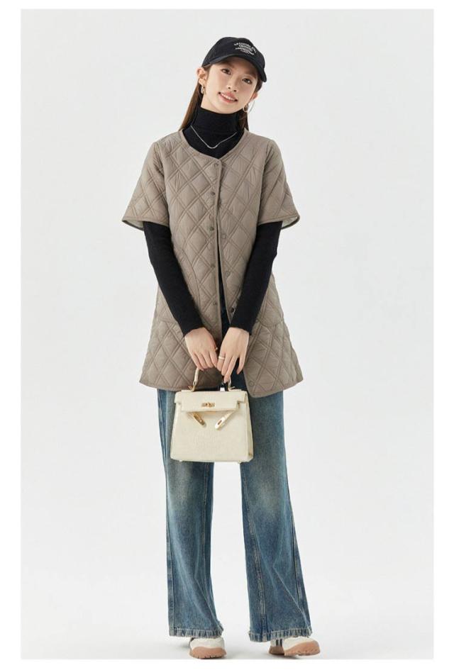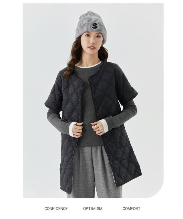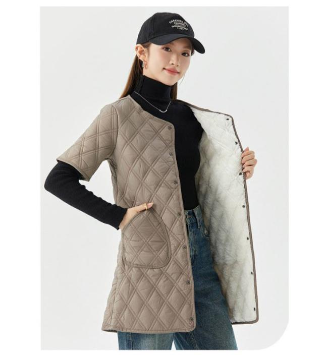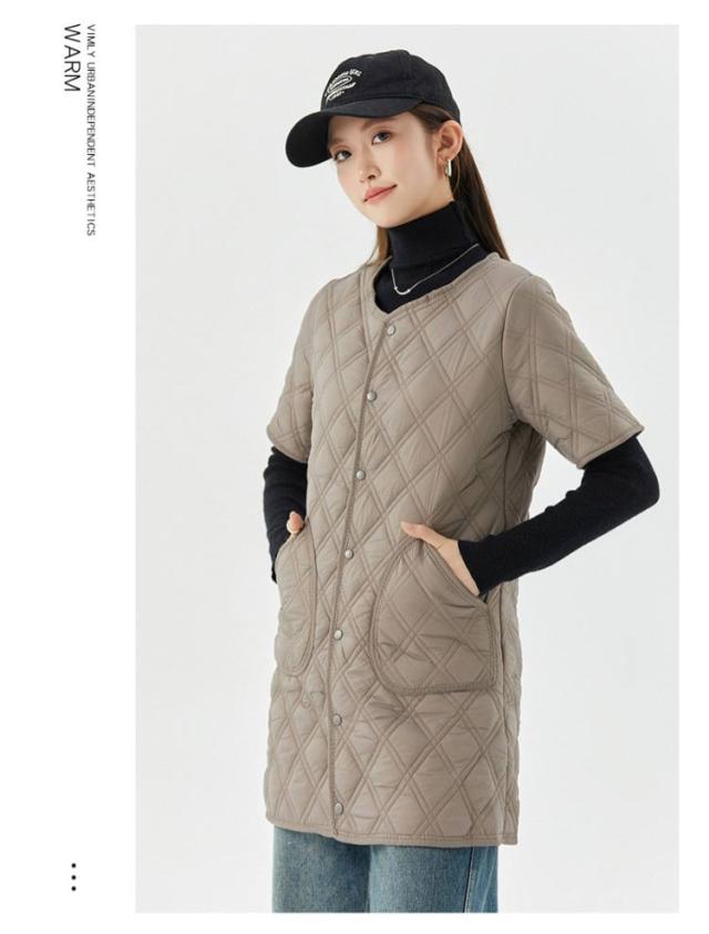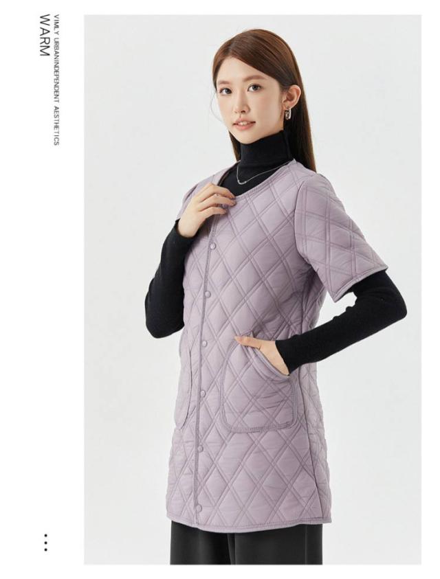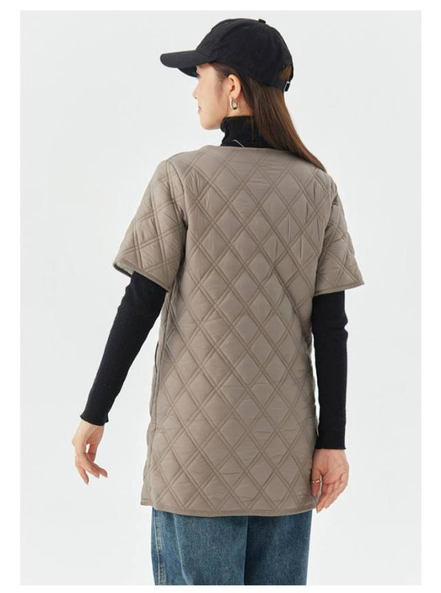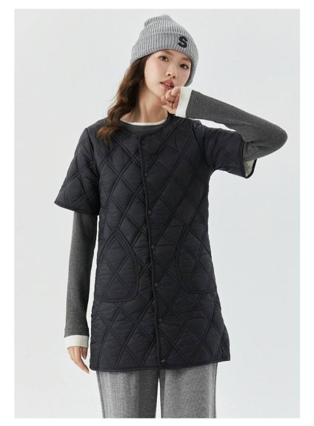 半袖ジャケット 中綿ジャケット レディース ダウンジャケット インナー ミドル丈 裏ボア 裏起毛 軽量 シンプル ポケット付き 保温 防寒 暖かい あったか カーディガン アウター 寒さ対策 冷え対策 仕事 事務所 部屋着 重ね着 シニア 年寄り 高齢者