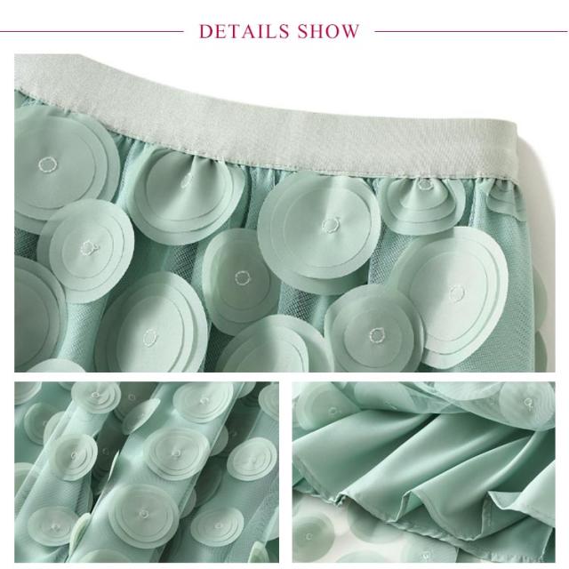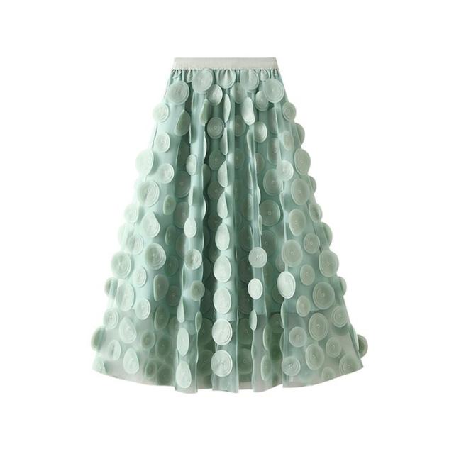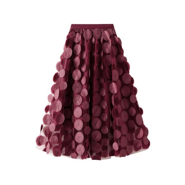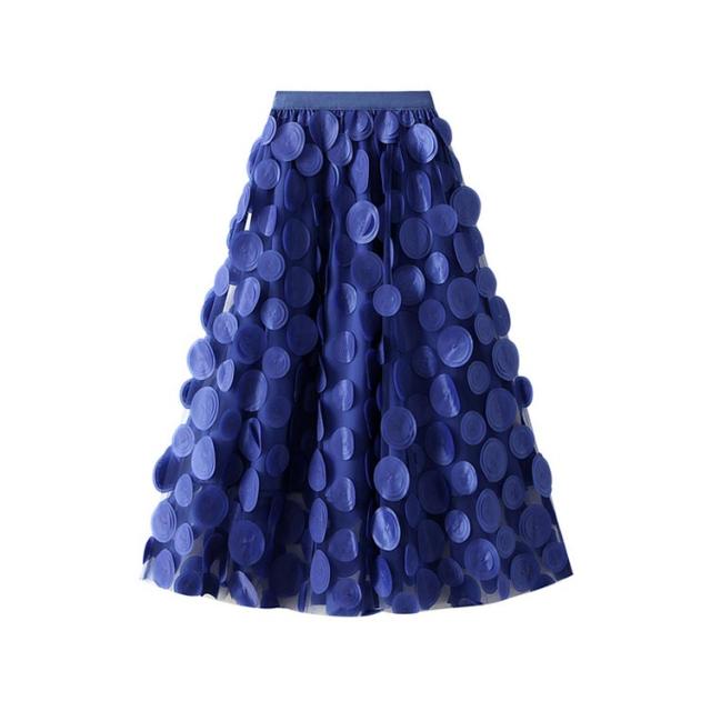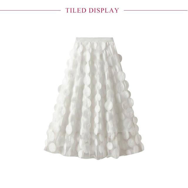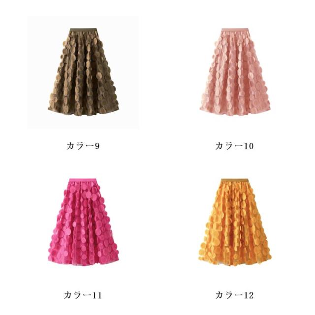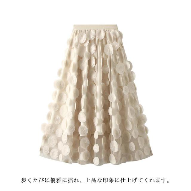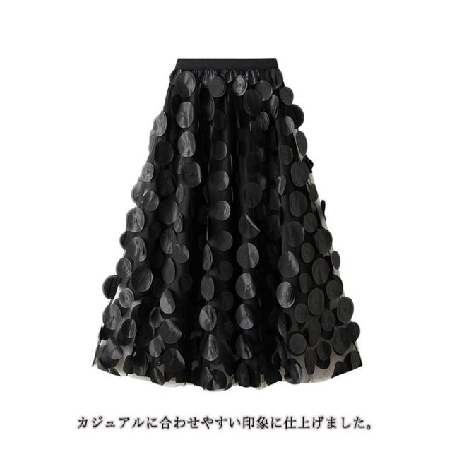 ボリューム Aラインスカート フェミニン ゆったり ロングスカート フレアスカート 膝下丈 立体ドット!チュールスカート お呼ばれ レトロ エレガント