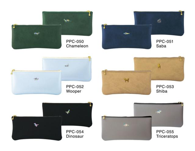 POINT ワンポイント フラットペンケース A|おしゃれ かわいい 高校生 中学生 入学 シンプル 小物入れ 動物 カメレオン サバ ウーパールーパー 柴犬 恐竜 トリケラトプス ティラノサウルス|MATOKA マトカ