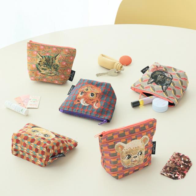 鮮やかなファスナーカラーがポイント!とてもキュートな動物たちのポーチ