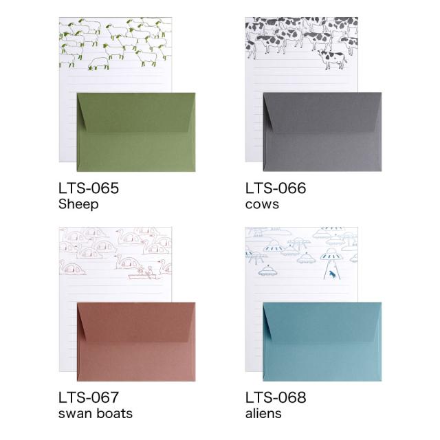 AH LA LA アララ レターセット|定型内 手紙 便箋 封筒 ギフト お祝い 誕生日 おしゃれ かわいい シンプル 動物 活版印刷 動物 犬 猫 クラゲ オバケ UFO ペンギン 恐竜|MATOKA マトカ【drc】