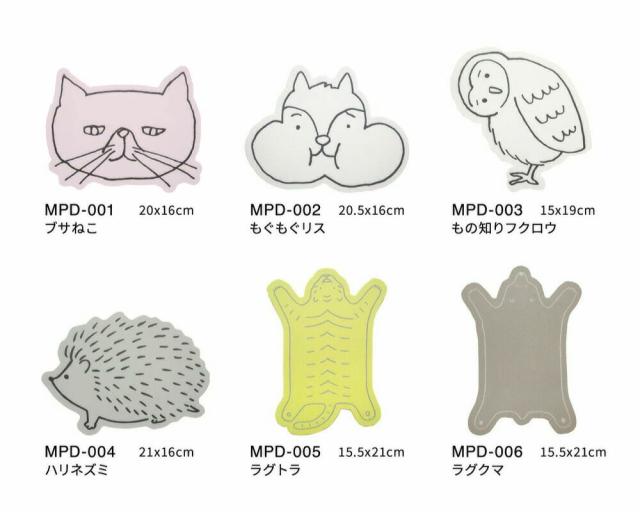 DIE-CUT MOUSE PAD ダイカット マウスパッド|型抜き 薄い 動物 ネコ リス フクロウ ハリネズミ ラグトラ ラグクマ ファラオ 土偶 メジェド フェルメール ムンク ダ・ヴィンチ シマエナガ おばけ|MATOKA マトカ