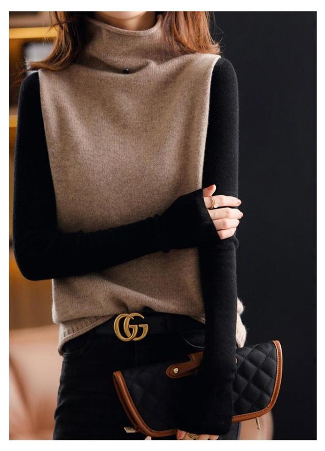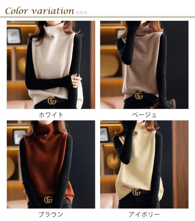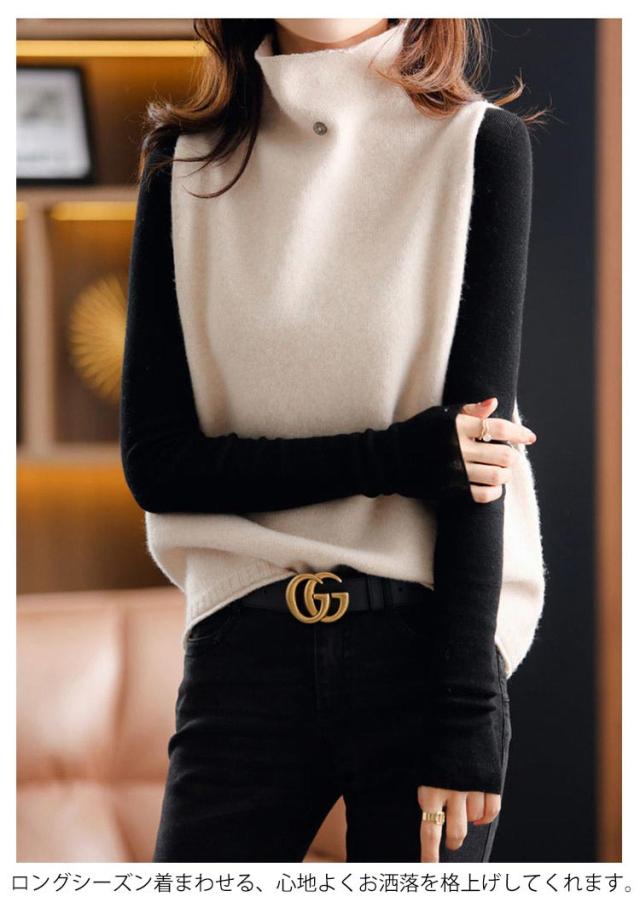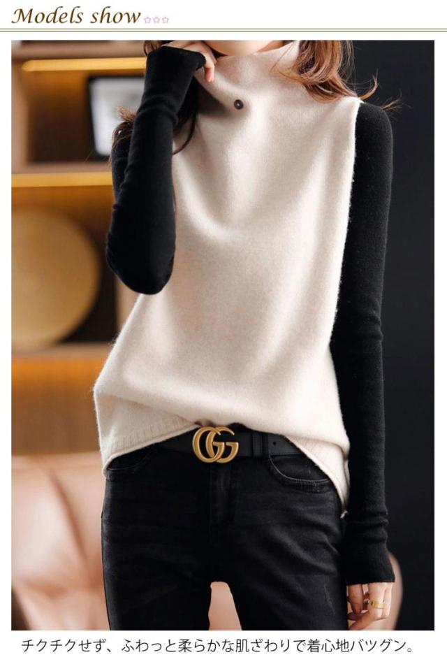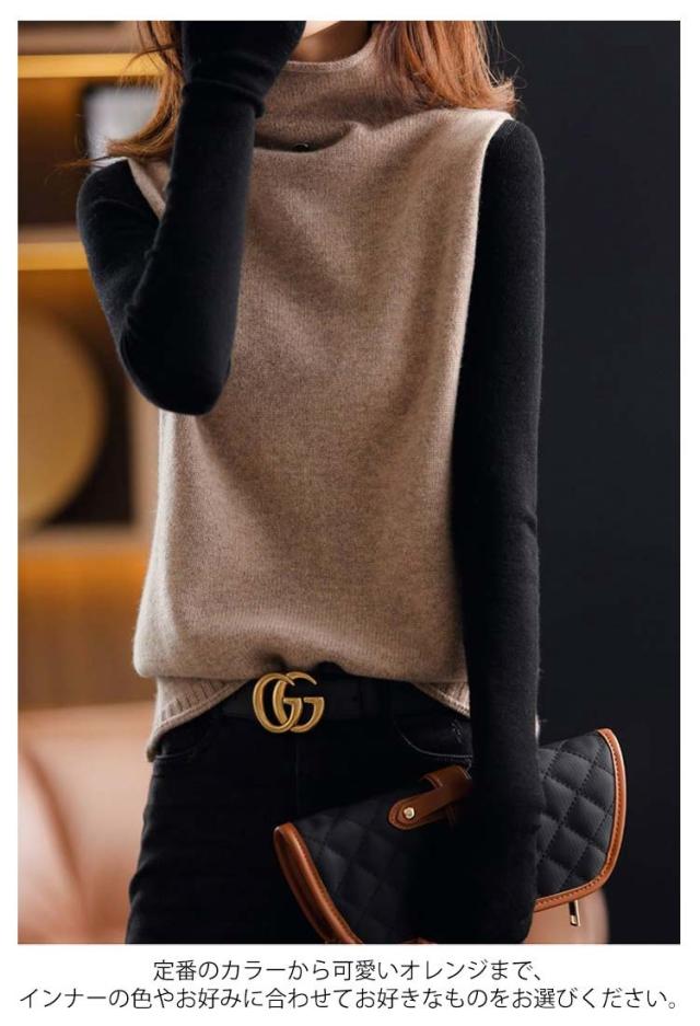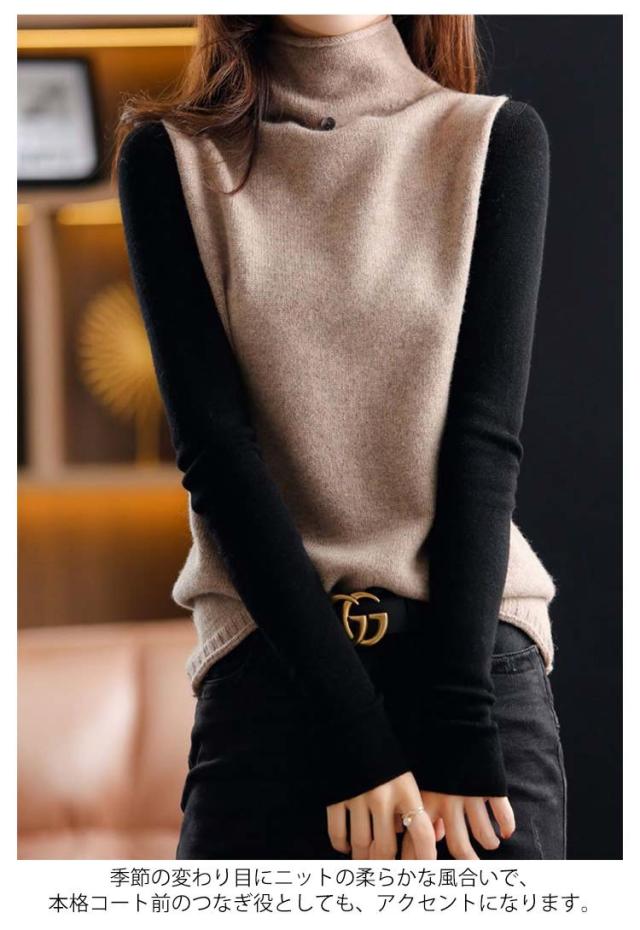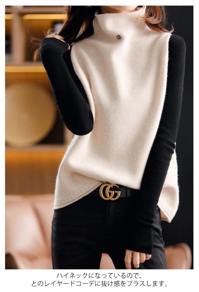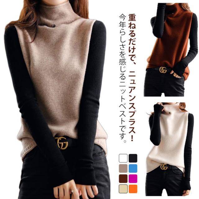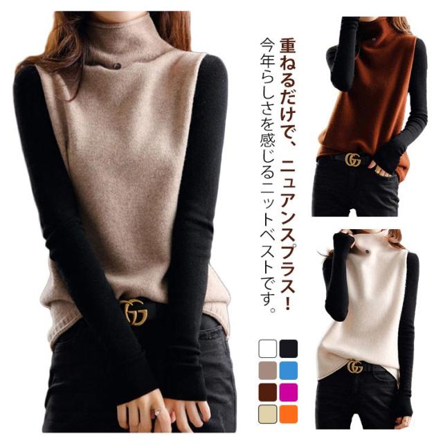 ニットベスト チョッキ 秋コーデ ベスト ハイネック プルオーバー ゆったり ノースリーブ トップス 無地 ジレ セーター ニットトップス ゆるニット レディース ニットベスト 送料無料 カジュアル 重ね着 レイヤード 無地 シンプル