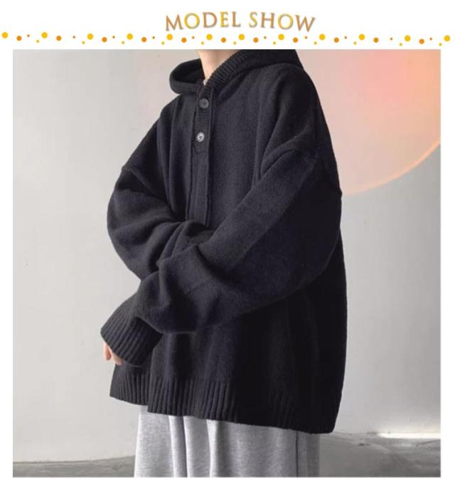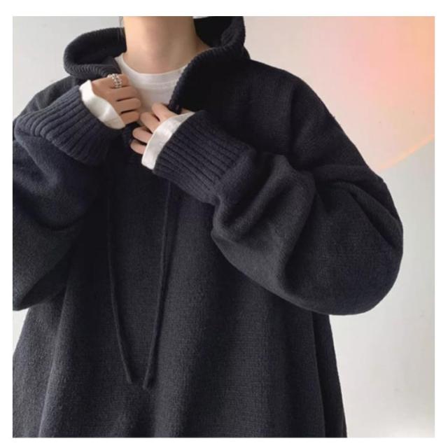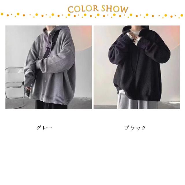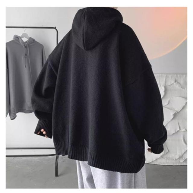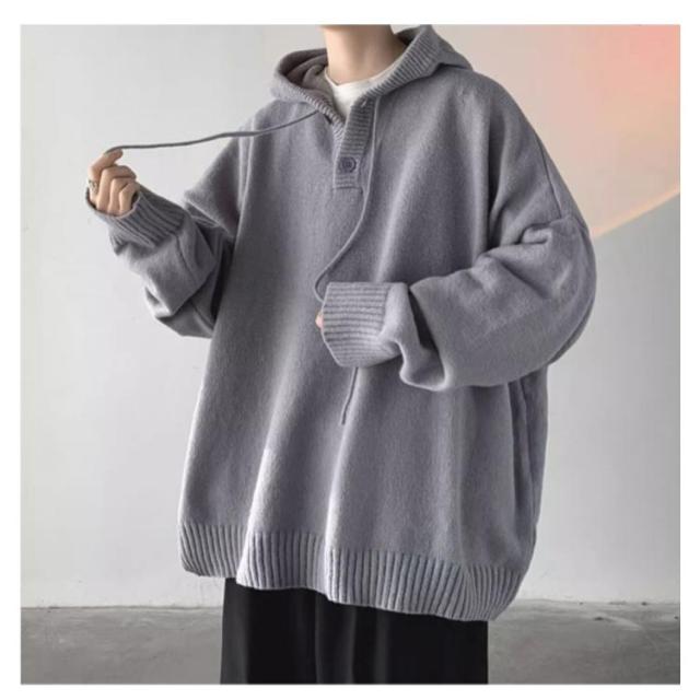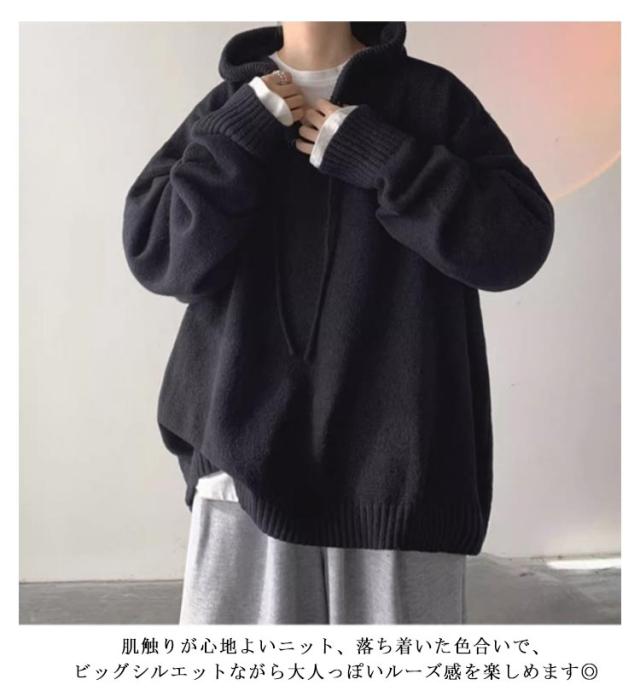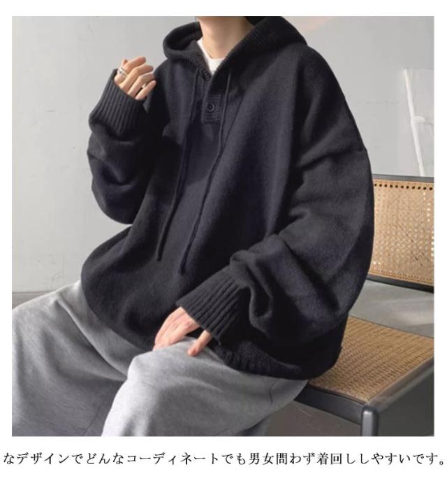 保温 フード付き ルーズ おしゃれ メンズ 韓国 ビッグシルエットパーカー プルオーバー パーカー ニットパーカー 大きいサイズ ゆったり セーター レイヤード 厚手 暖かい 防寒 無地 シンプル カジュアル 秋服 冬服 春 秋