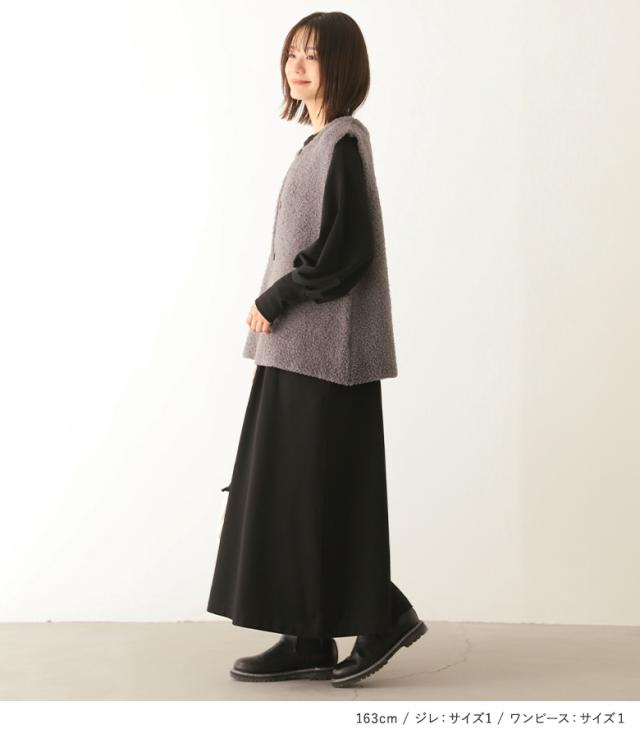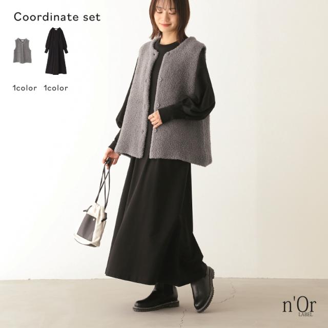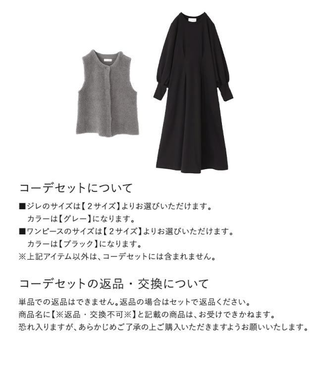 『プードルニットジレ×ウエスト絞りワンピースコーデ2点SET』【メール便不可】【60】[2点コーデセット 2024 レディース ジレ ベスト トップス ライトアウター ワンピース ロングワンピース ロング丈]
