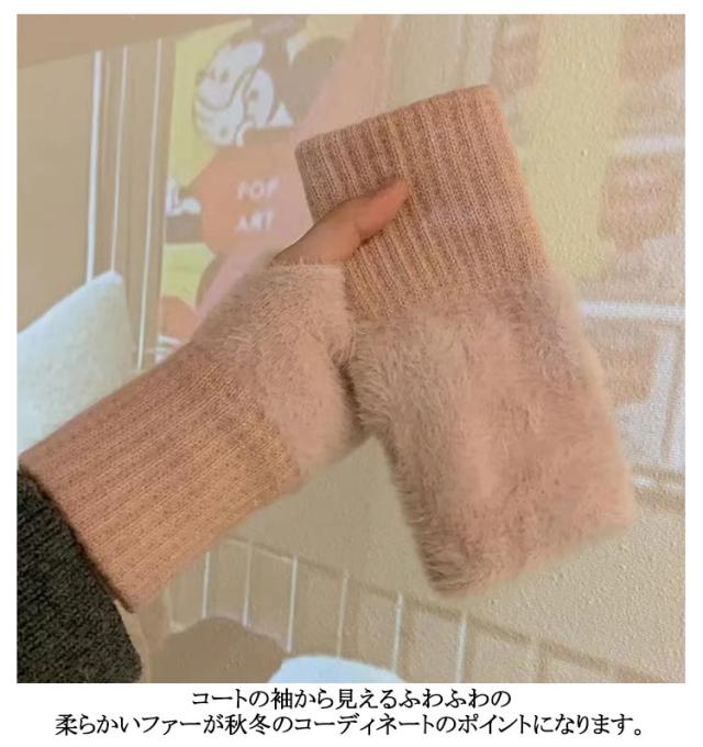 【送料無料】 【送料無料】 指なし 防寒 手袋 レディースざっくりニットモフモフ手袋 ファー レディース おしゃれ あったかグッズ かわいい 暖かい 手袋 アームウォーマー ハンドウォーマー 秋冬 クリスマスプレゼント 女性 誕生日 gift クリスマス 通勤 自転車