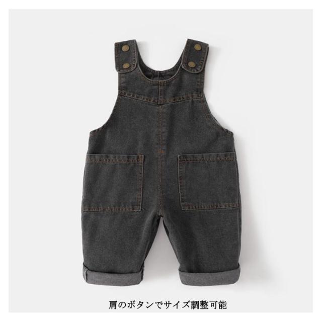 | 70cm 〜 120cm 定番のシンプルデザイン、肩紐が長さ調節可能ですので、長く着れます。 柔らかいデニム素材利用 肩のボタンでサイズ調整可能 様々トップスに合わせやすい | |