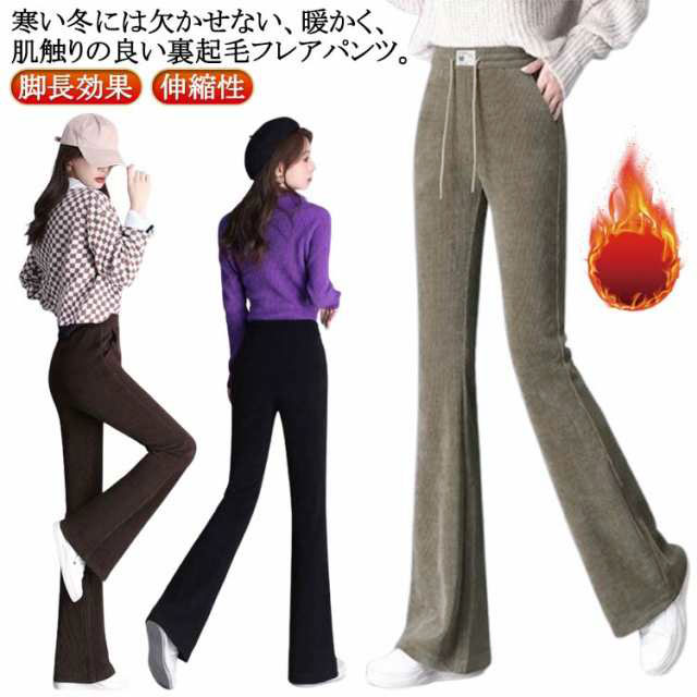 防寒 秋 フレアパンツ 裏起毛 パンツ レギンスパンツ あったかパンツ ハイウエスト 暖かい オフィス レディース 高身長 あたたかい 防寒 保温 美脚 冬 長ズボン 細見せ ストレッチ 通勤 脚長効果 黒 ブラック コーヒー ブラウン