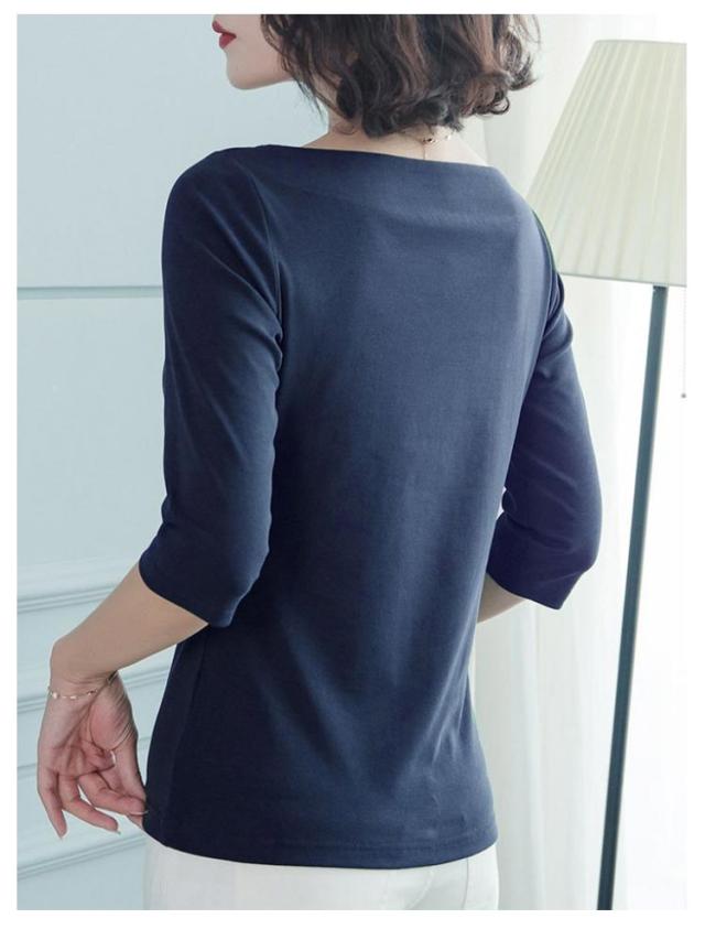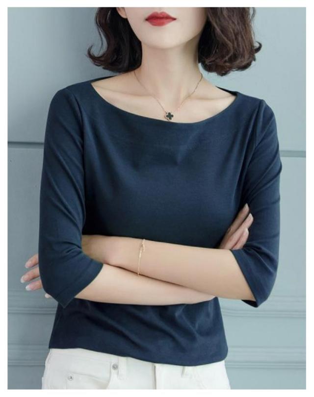 | 大人カジュアルな雰囲気の七分袖Tシャツ。 コットン素材を使用したさらりとした着心地感。 綺麗な鎖骨が見える大きめのボートネック仕様♪ 春夏のトップスとしてはもちろん、 インナーに着てレイヤードスタイルも楽しめ。 | |