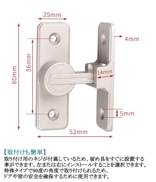 後付け 後付け 後付け 引き戸 90度/180度 鍵 ドア留め金ロック 引き戸 ドアロック ドアバックル 回転式 フリップラッチロック スライディングドア 窓 鍵 ロック 耐震ラッチ 防犯 部屋 取り付け簡単