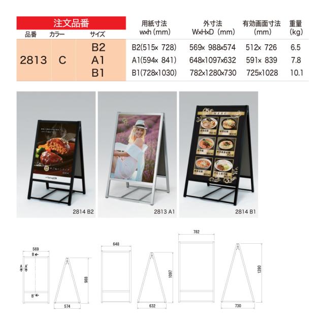 【正規代理店】ベルク アルモード ポスタースタンド 2813 A1 C(シルバー) 屋外用 両面 シンプル 広報 告知 案内 お知らせ イベント 催事