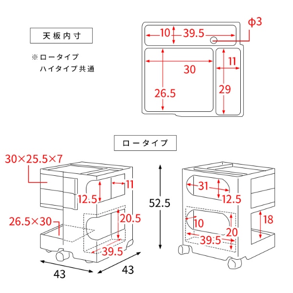 サイズ 幅43cm×奥行き43cm×高さ52.5cm