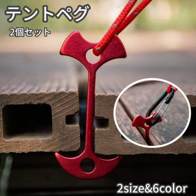 テントペグ 2個セット テント タープ シート固定 杭 ロープ固定 アウトドアグッズ キャンプ バーベキュー ビーチ フック