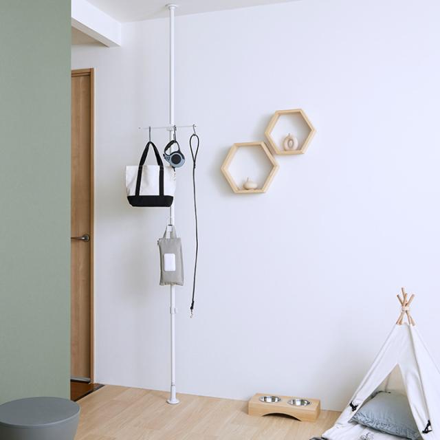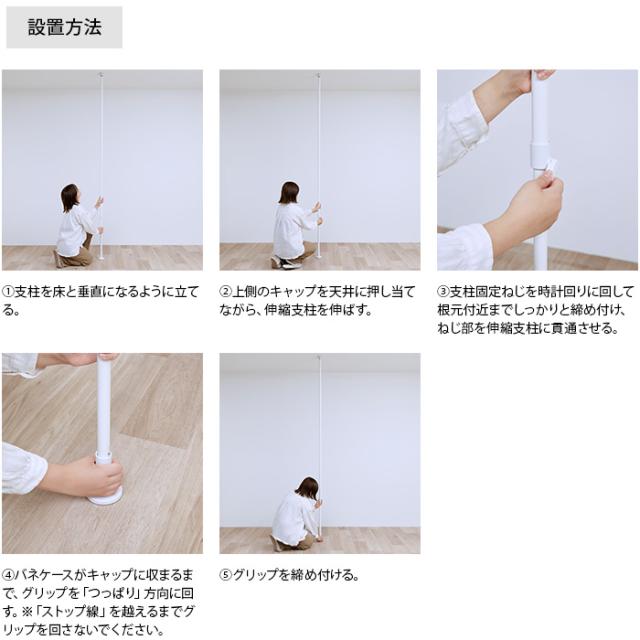 床から天井まで棒をつっぱった状態で関連パーツの付け外しが可能。