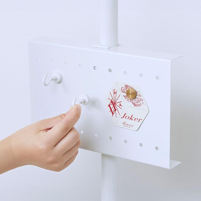 つっぱりを固定した後に関連パーツ(別売)の設置が可能。高さの調節やパーツの増設に便利です。