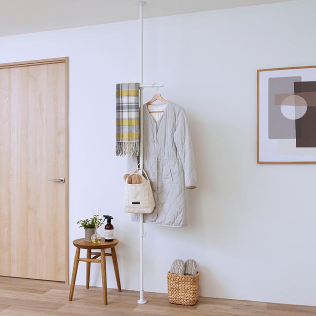 老舗突っ張り棒メーカー「平安伸銅工業」社の技術により、スリムでシンプルな見た目ながら耐荷重10kgを実現。