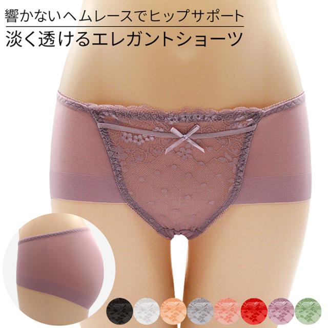 ショーツ レディース スタンダード レギュラー フルバック 響かない ヘム仕様 ストレッチ レース 透け感 さらさら おしゃれ 大きいサイズ 黒 白 赤 紫 緑 rs-005