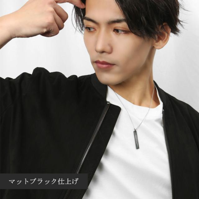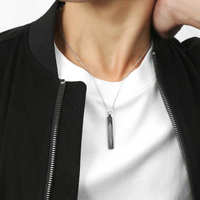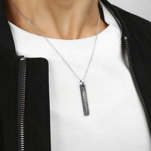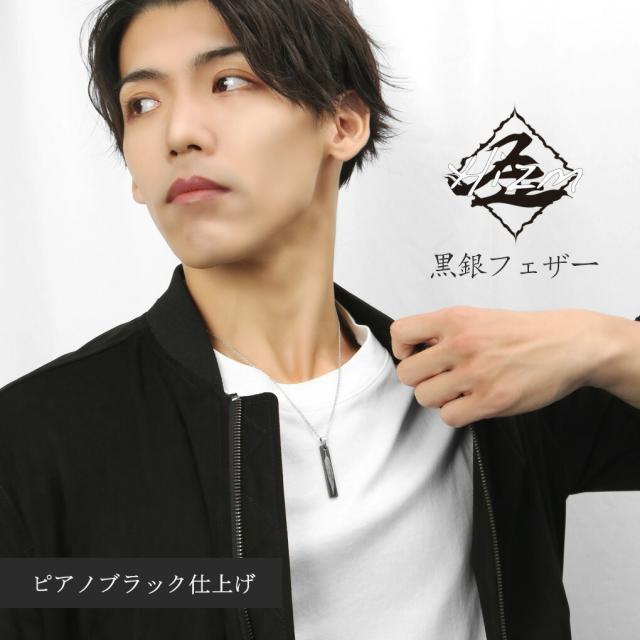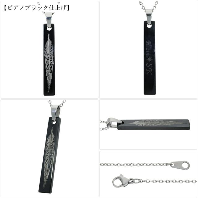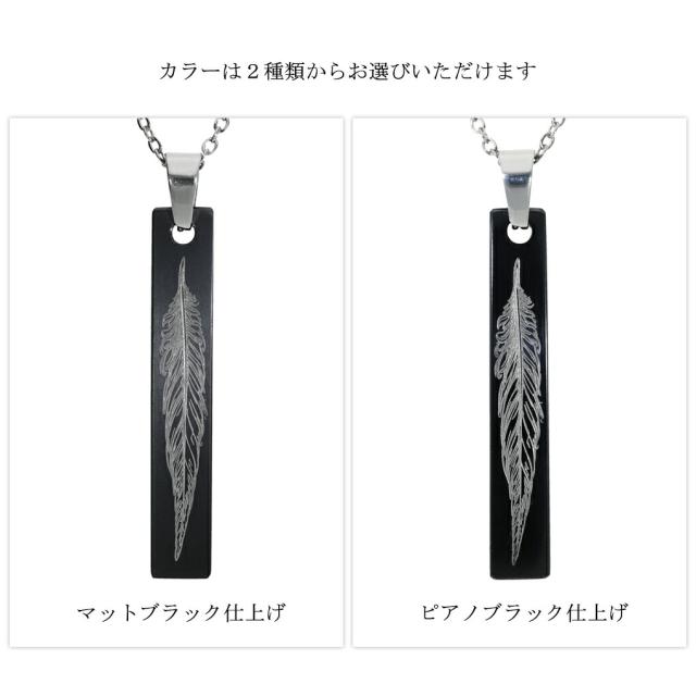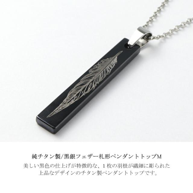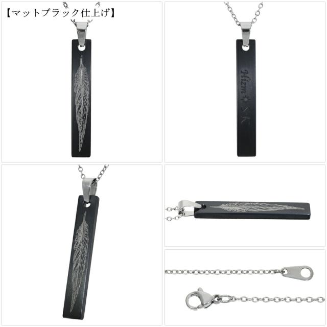 Hizm 選べる2種 フェザー 羽根 ブラック 黒 札形 プレート M ネックレス (チェーン付き) ペンダント チタン 羽 彫刻 削り出し きれいめ メンズ