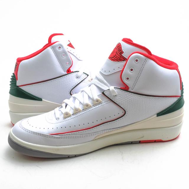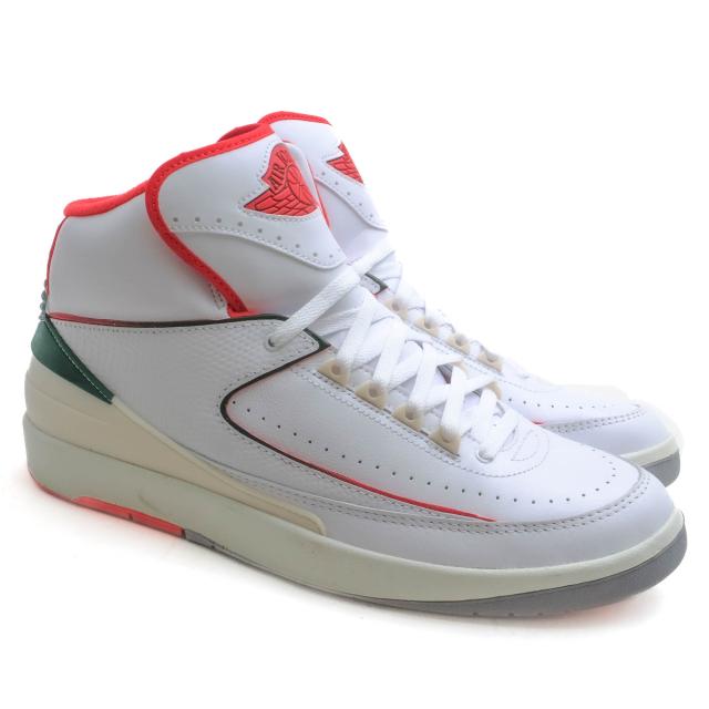 1986年に名匠たちが手掛け、スウッシュロゴを排したエアジョーダン2の登場は、シューズ界に革命をもたらしました。AJ2は、アイコン的存在であるAJ1の後を継ぎ、イタリア人デザイナーによってデザインされ、時代を超えるスタイルを築きました。イタリアの国旗を思わせる赤、緑、白のカラーブロッキングが特徴です。シュータン、ヒール、ライニングには「ファイヤーレッド」がアクセントとして加えられ、オーバーレイのエッジにはグリーンフェイクリザードスキンを採用しています。足裏にはNike Airユニットが搭載されており、上質な履き心地を提供します。また、タンにはウイングロゴ、ヒールにはNIKEロゴが施されており、ハイカットデザインで足元をスタイリッシュに演出します。