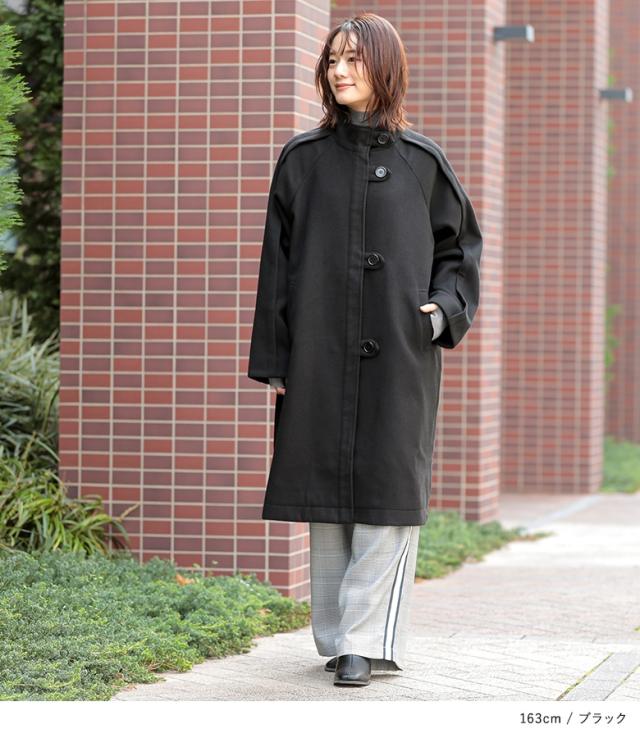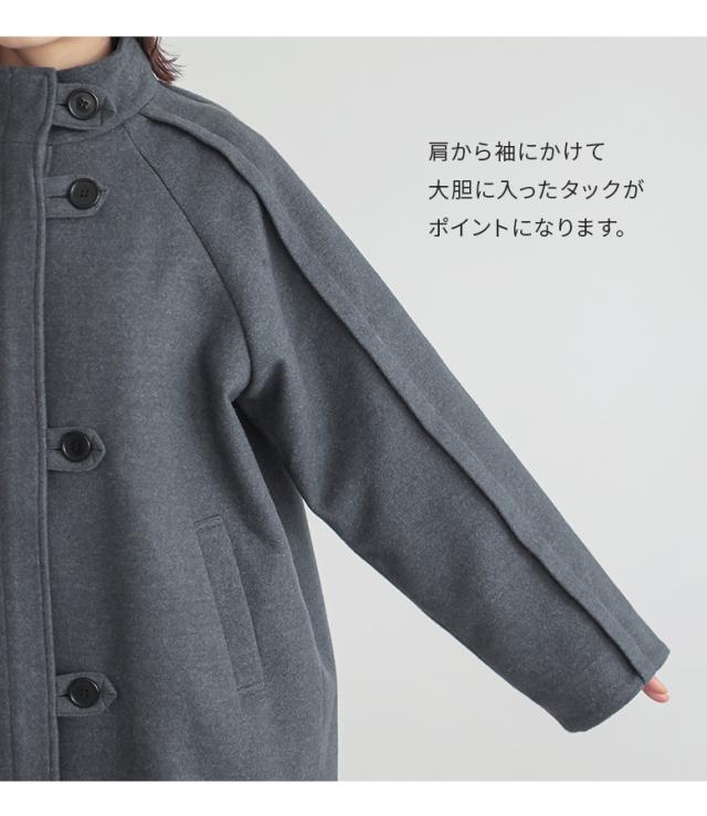 【送料無料】『ラグラン切替デザインコート』【メール便不可】【50】[コート レディース アウター ジャケット 長袖 ラグランスリーブ タック スタンドネック 膝下丈 切り替え ボタン オシャレウォーカー]