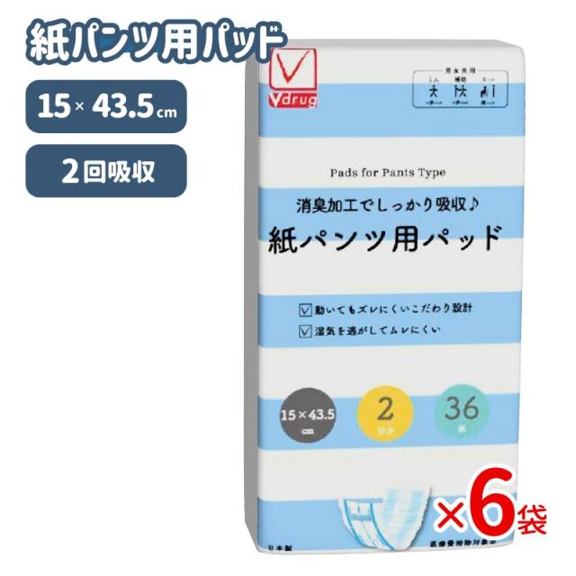 即納在庫品 【ケース販売】大人用紙おむつ 安心吸収パッド36枚×6袋 計216枚紙パンツ用パッド 2回吸収 V-check カミ商事