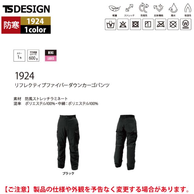 藤和 TSDESIGN 作業服 防寒着 1924 リフレクティブファイバーダウンカーゴパンツ 5L-6L 秋冬 作業着 作業ズボン