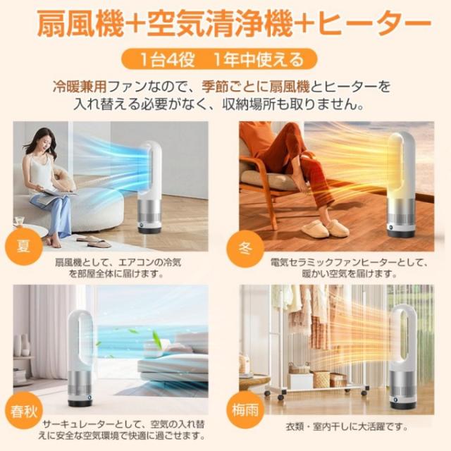 【18インチ冷暖タイプ】セラミックヒーター 冷暖兼用 電気ファンヒーター 冷風機 羽なし扇風機 タワーファン 空気清浄 温風冷風 冷暖型 サーキュレーター 冷暖風切替 風量8段階 ヒーター 扇風機 羽なし ファンヒーター 足元 自動首振り リモコン付き タイマー付 静音 省エネ