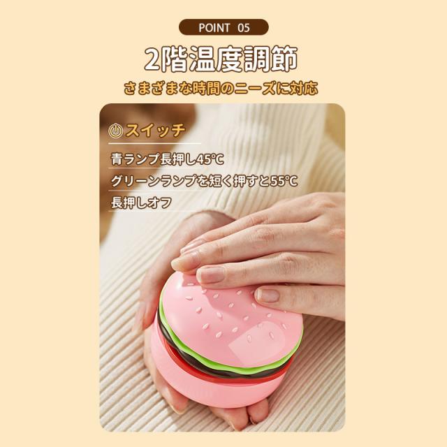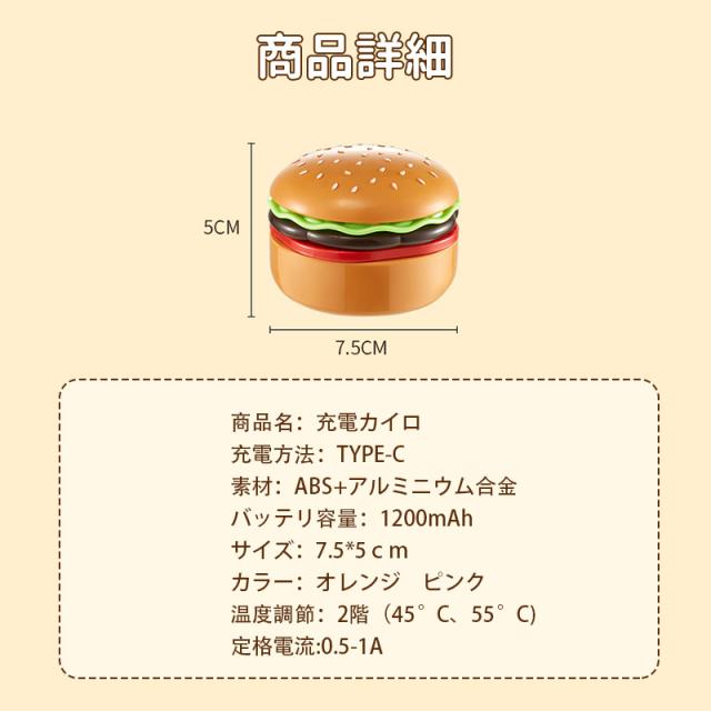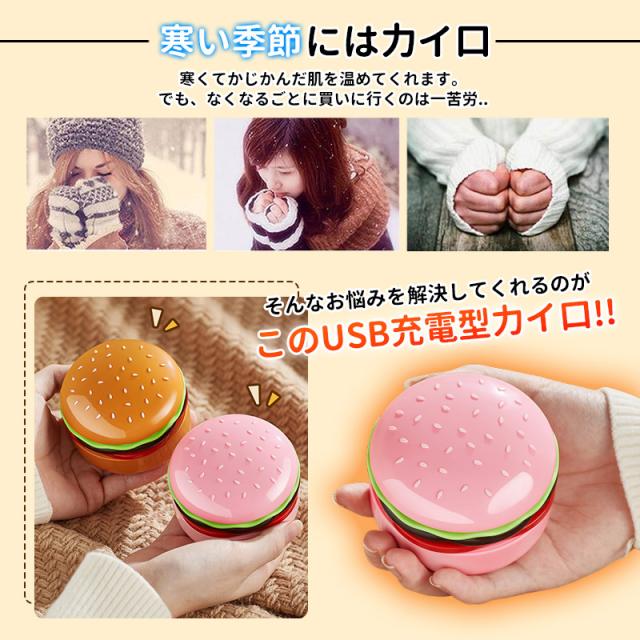 カイロ 電気カイロ ハンバーガーカイロ ハンバーガー 急速発熱 繰り返し使える 2階温度調節 軽量 寒さ対策 クリスマス 3秒速熱 電気かいろ