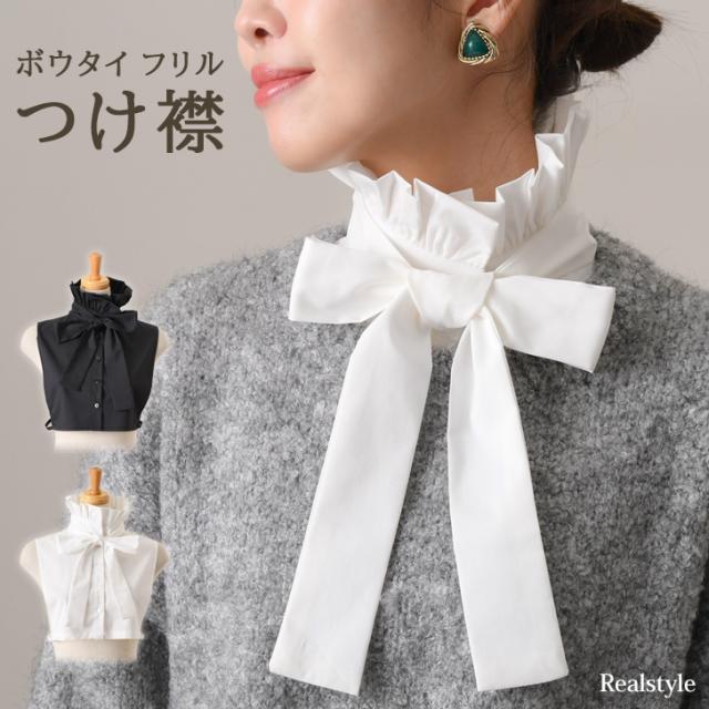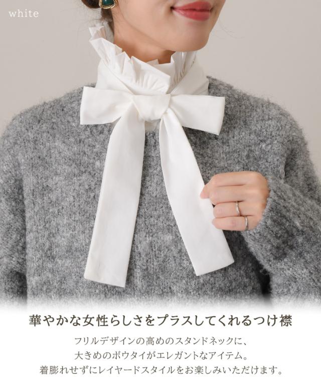 新作 付け襟 つけ襟 レディース 白 黒 フリル スタンドカラー ハイネック インナー ボウタイ リボン ブラウス シャツ 重ね着 着回し 可愛い