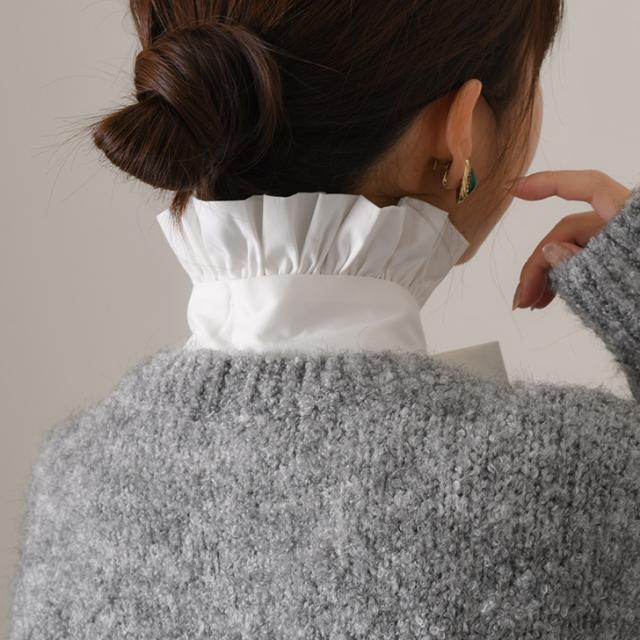 フリルデザインの高めのスタンドネックに、