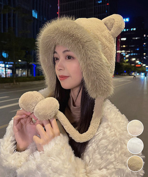 くまみみ帽子 マフラー付きファー帽子暖か 送料無料 即日発送