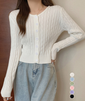 ケーブル編みが旬のシルエットに見せてくれるショート丈のニットカーディガン