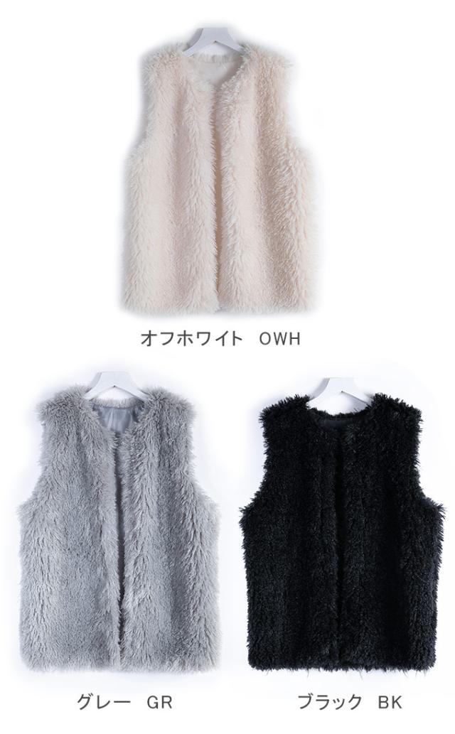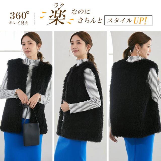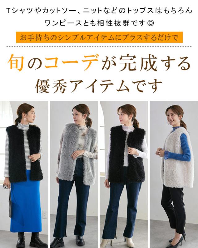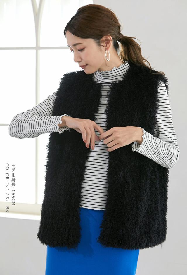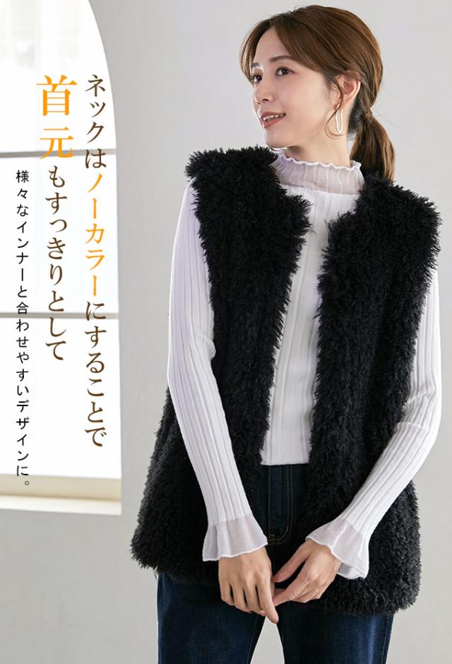 ボア ファー ベスト シープ風 レディース トップス ファーベスト ボアベスト アウター 羽織り ジレ ジャケット ノーカラー 防寒 暖か