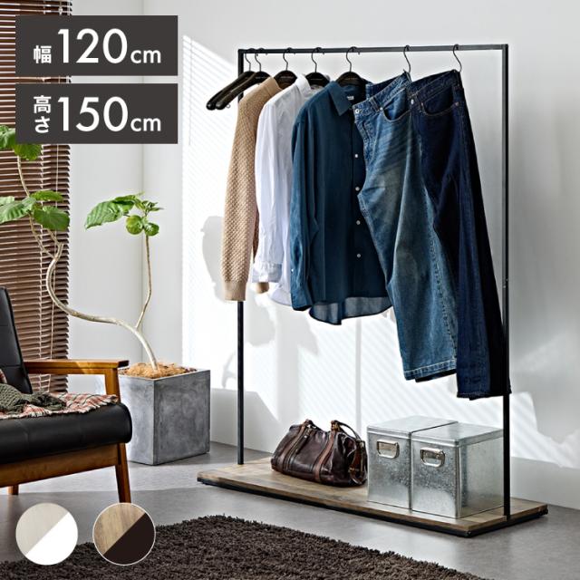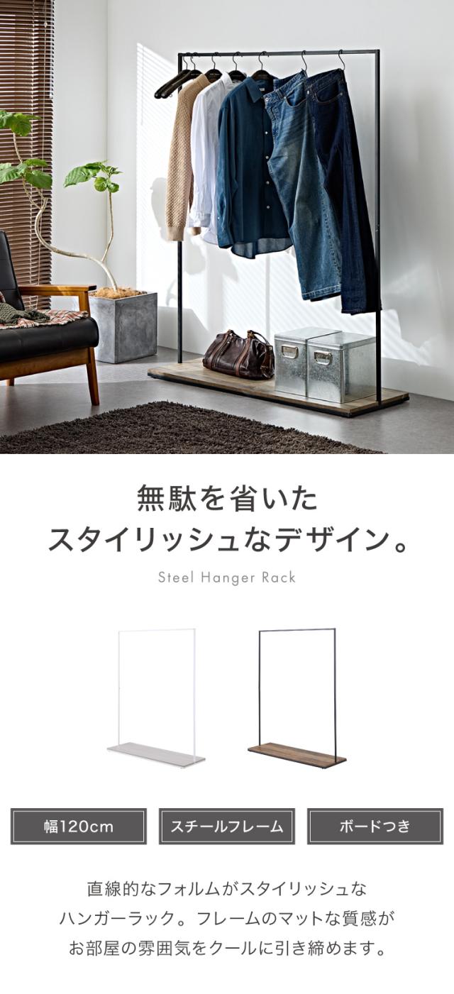 ハンガーラック スリム スチール 幅120cm 棚付き スタイリッシュ おしゃれ 一人暮らし 省スペース スチールラック 洋服ラック 衣類ハンガー パイプハンガー 衣類収納 ラック 寝室 玄関 大容量