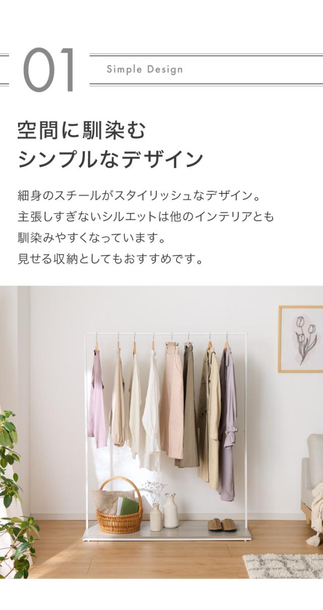 ・高さ150cmでロング丈のコートやワンピースもかけることができます。