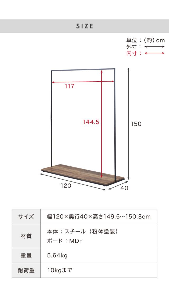 幅120cm×奥行き40cm×高さ149.5〜150.3cm