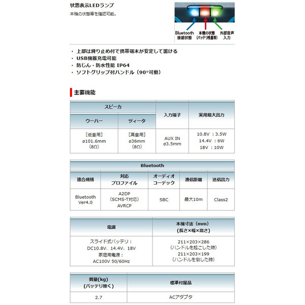 マキタ 充電式スピーカ MR200B(黒)+バッテリBL1830B+充電器DC18RF付 AC100V/10.8V/14.4V/18V対応 makita 当店オリジナルセット品