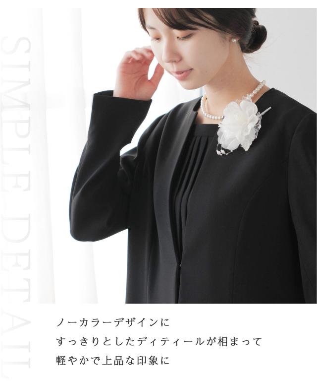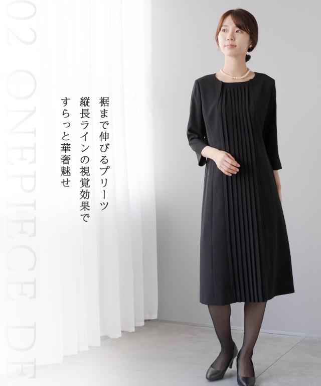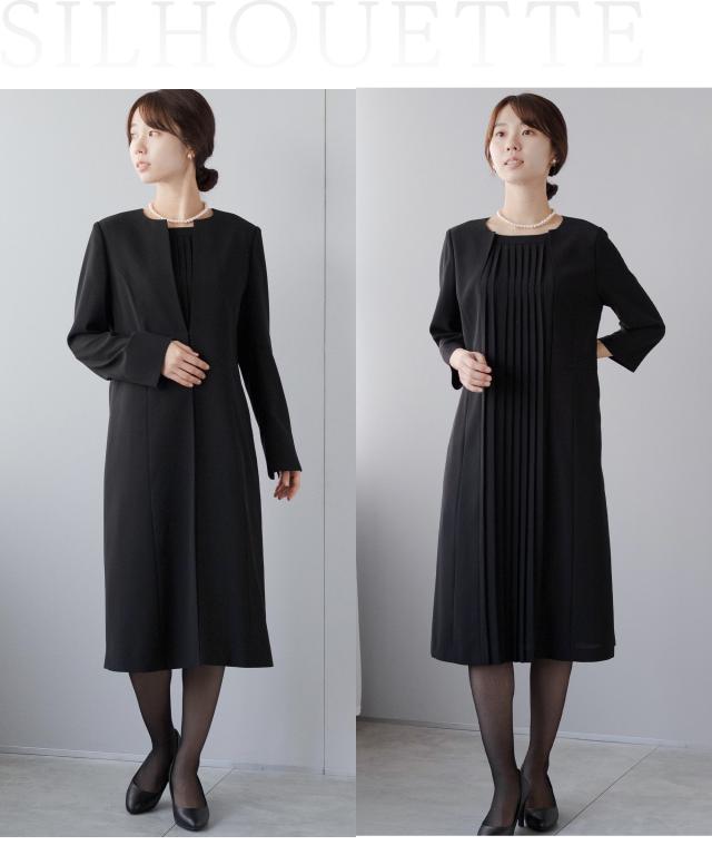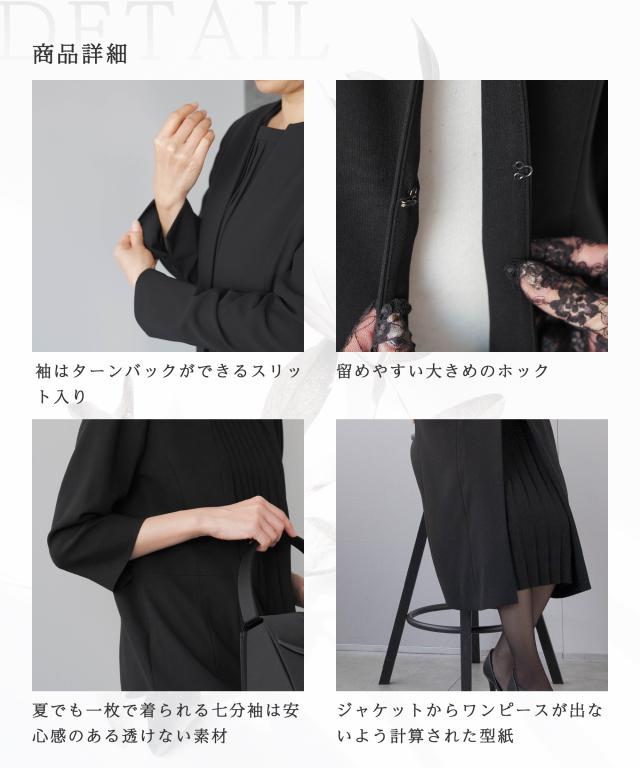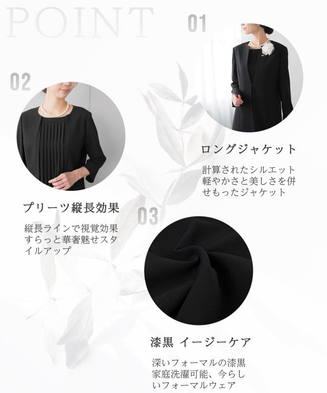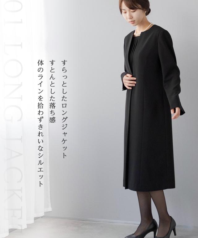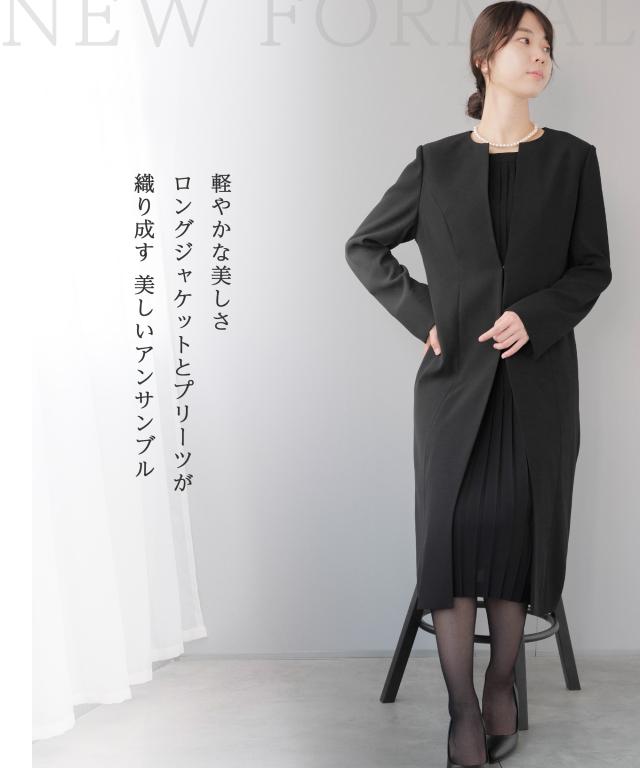 キーワード:喪服 礼服 ブラックフォーマル アンサンブル ワンピーススーツ プリーツワンピース ロング丈ジャケット ロングジャケット お通夜 葬儀 葬式 お別れの会 偲ぶ会 20代 30代 40代 50代 おしゃれ かわいい 上品