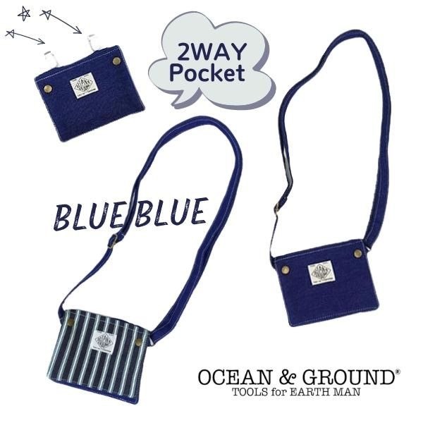 Ocean&Ground 2WAY 移動ポケット BLUE BLUE キッズ ジュニア デニム クリップ式 ポケットポーチ ショルダー付き 子供用 男の子 女の子 入学 新学期 シンプル おしゃれ ブルーブルー オーシャンアンドグラウンド 1215907
