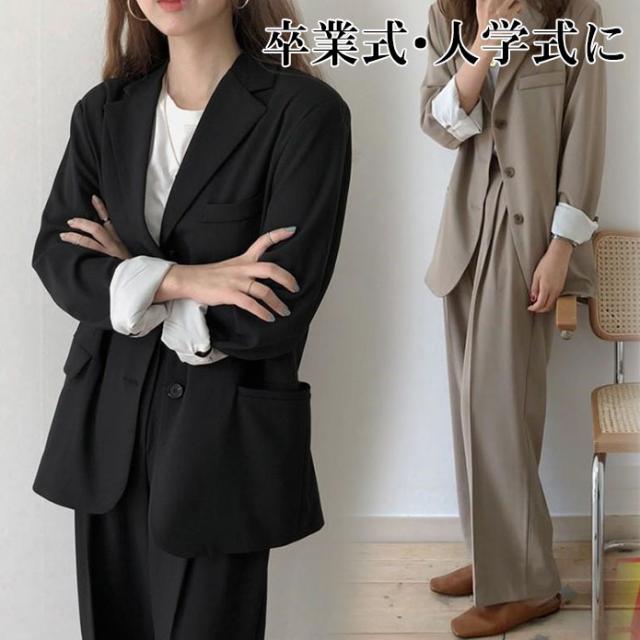 スーツ パンツスーツ レディース 2点セット セットアップ ロング丈パンツ カジュアル 入学式 入園式 おしゃれ 卒業式 通勤 オフィス OL