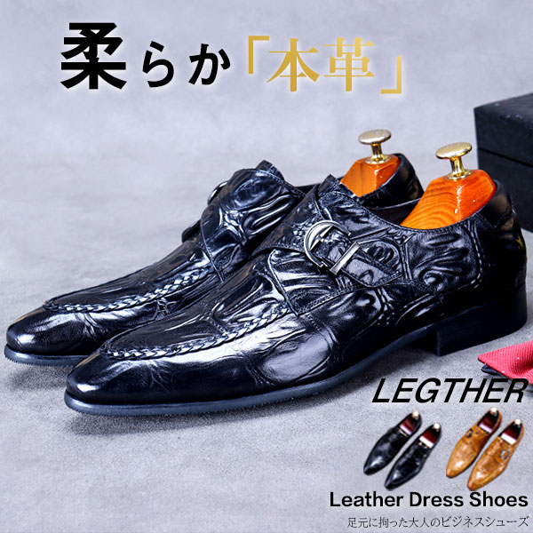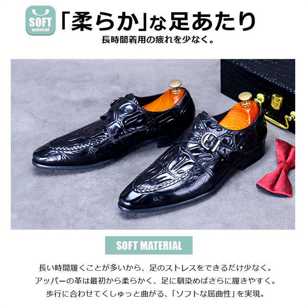 ポイント超超祭利用可 ビジネスシューズ 靴 本革 メンズ スリッポン モンクストラップ ロングノーズ スリッポン ローファー フォーマル 幅広 紳士靴 プレーントゥ