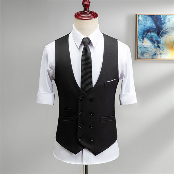 ポイント超超祭 ベスト メンズ テーラードベスト ジレベスト スーツベスト 制服 ダブルボタン スリム 前開き Vネック フォーマル ビジネス 結婚式 コーディネート