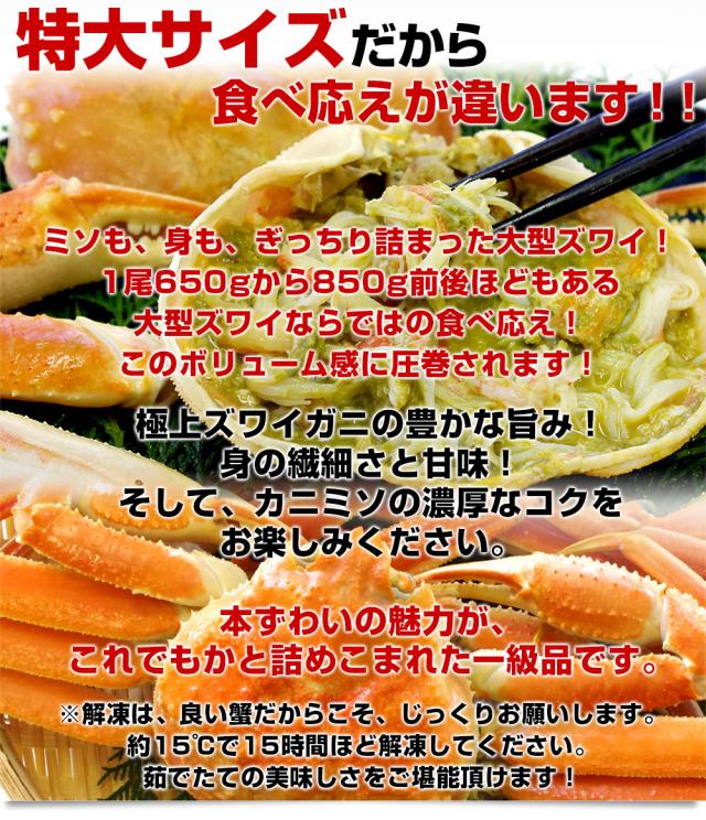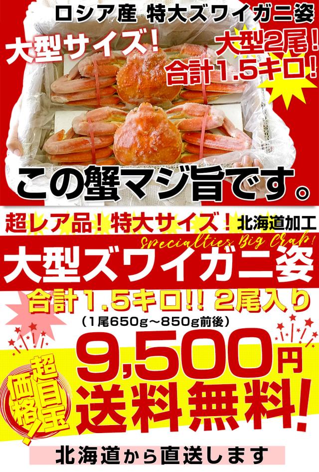 北海道より直送 高級ズワイガニ姿 大型サイズ 約1.5キロ(2尾入り)送料無料 ズワイ カニ かに 蟹 ギフト カニみそ【発送時期:カート内に記載しております】